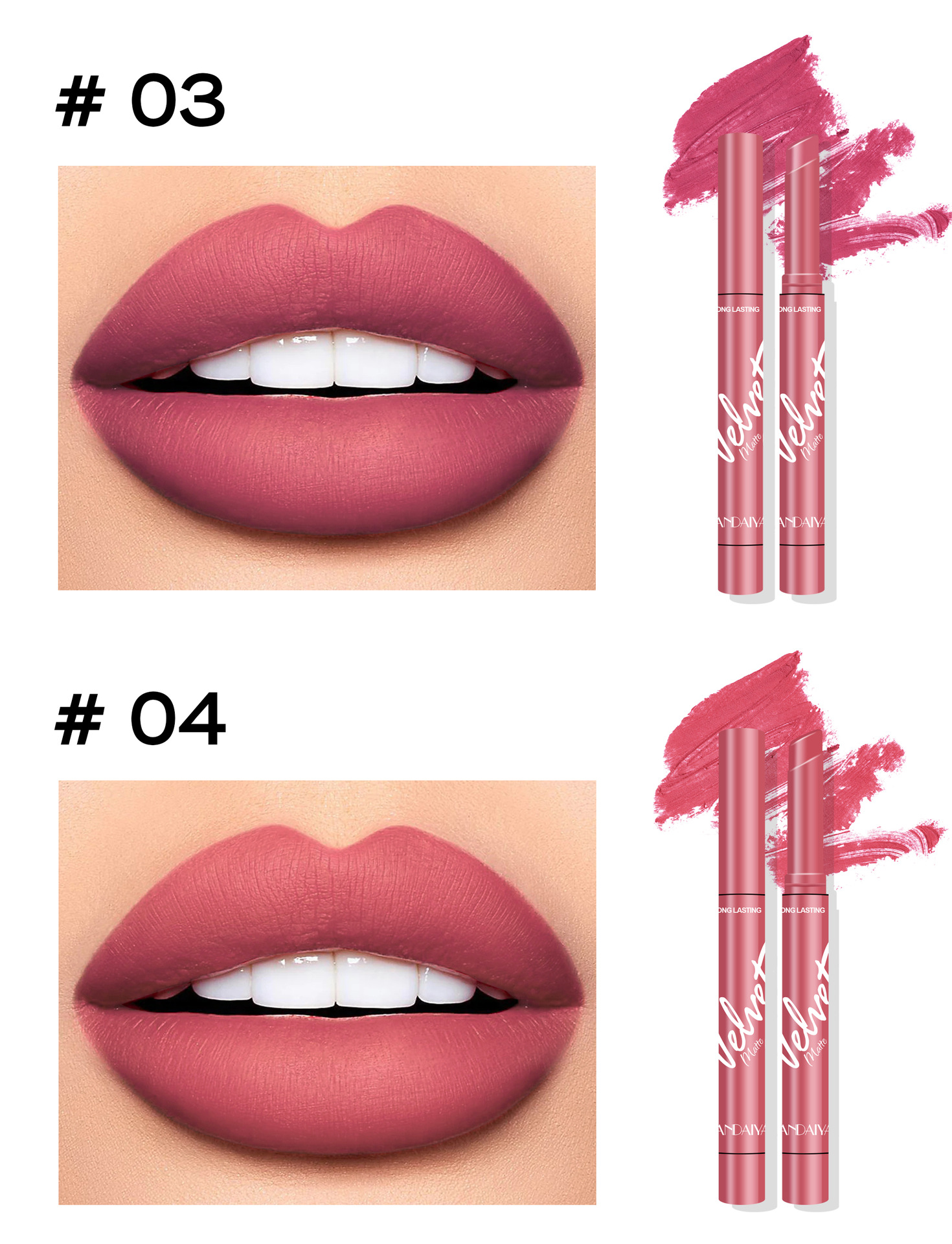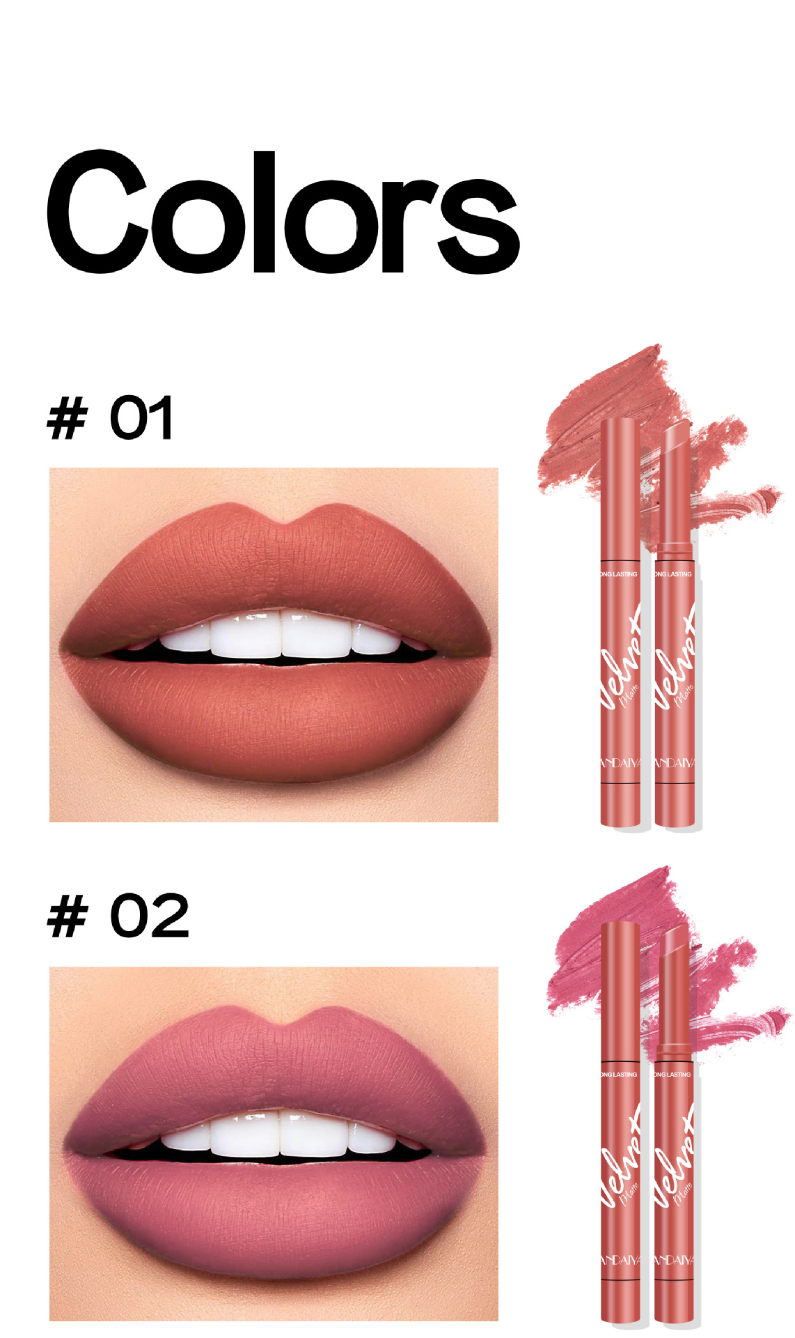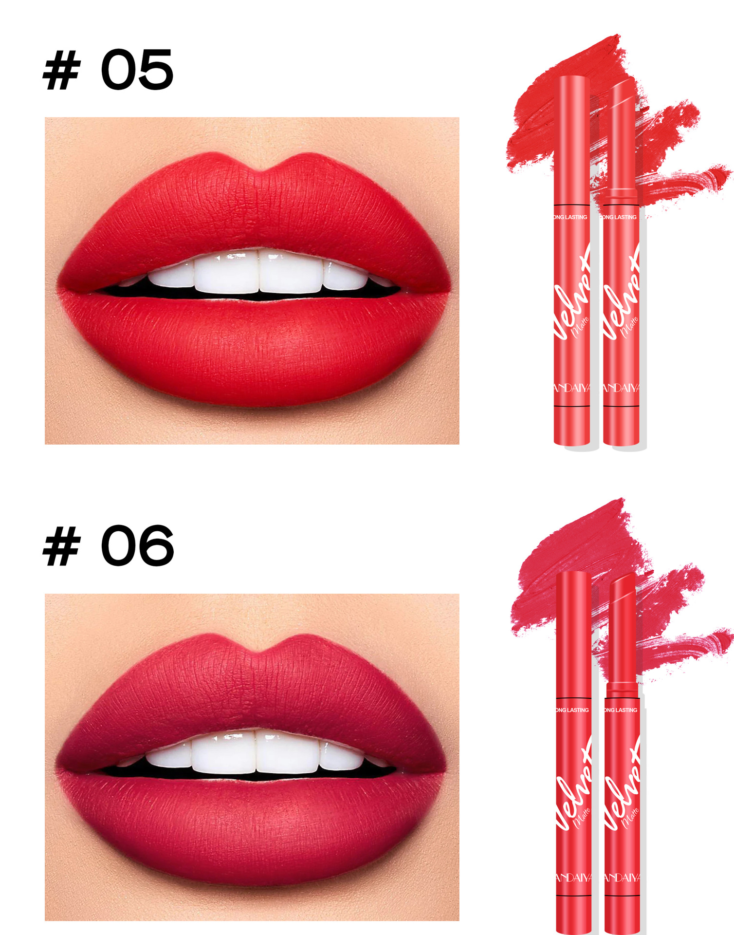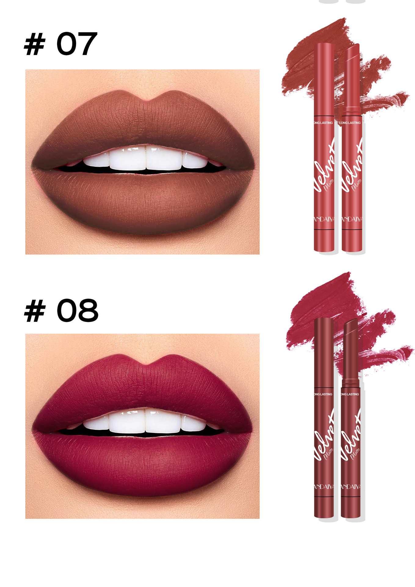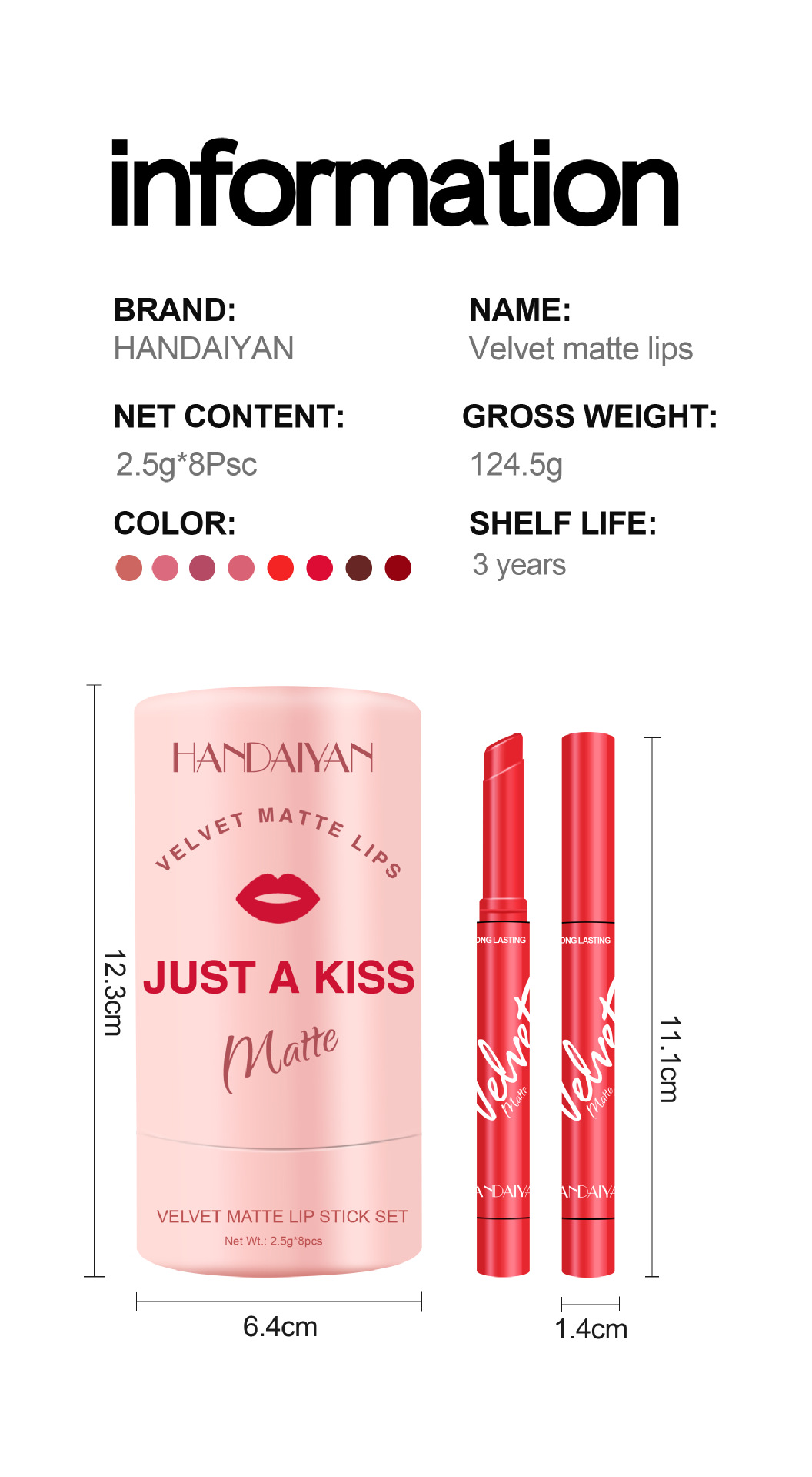 El set de labiales retractiles x8 mate es un conjunto de ocho barras de labios en formato retráctil, lo que significa que el producto se despliega y retrae fácilmente con un mecanismo giratorio. Estos labiales están formulados con una textura mate, lo que significa que proporcionan un acabado suave y opaco en los labios, sin brillo adicional.